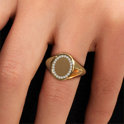 This gold women´s signet ring is a true work of art! This is our charming Rosy Oval 2 signet ring and it is set with a round lab-grown diamond. In our crafting studio, we use a combination of the latest techniques and ancient traditional