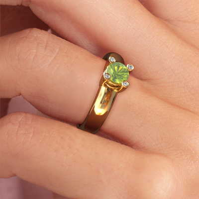 How would you describe your own style? Are you looking for something uniquely different? This sparkling gold Fleur ring is astonishing! Simply customize to your or her own liking. This ring is set with peridot. These peridot have been carefully selected because your ring must be adorned with nothing but the most beautiful gemstone. Wouldn't you agree? Our expert goldsmith will create your ring in our own crafting studios, where the peridot will be set with care. The ring will then be polished to perfection to give it that extra sparkle. It's a perfect ring for a woman of excellent taste!How do you like this design gold ring? Simply customize this Fleur ring, using our online tool. Subsequently, your personal sparkling Fleur ring will be made by hand by our goldsmiths. Precious metals and gemstones can be customized to your liking. Do you have specific preferences which are unavailable in our online tool? Please feel free to contact us. We will customize your personal design ring to your liking.After receiving your order, our goldsmiths will passionately start the creative process of making your ring in our own studio. Because we don't have a big stockpile, these costs will not be passed on to you. Our pricing is proof of that! We offer top quality jewels at lowest price, guaranteed.To make it easier for you, we offer a 30 day return policy. Check our terms and conditions.
