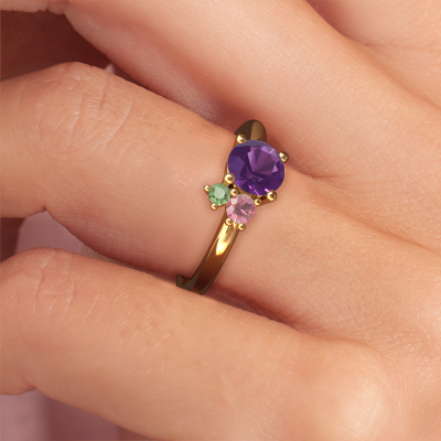 This ring called Anouk is made of 14 Carat gold and is set with amethyst. Are you in the market for a unique gold ring with a modern twist? Then this ring might suit you. Simply customize to your or her liking. It suits the contemporary modern woman. This graceful ring is set with beautiful amethyst. This has been carefully selected. Because your ring must be adorned with nothing but the most stunning gemstone. Our expert goldsmith will create your ring in our own studio, where the amethyst will be set with great care. The ring will then be polished to perfection to create a stunning ring. By using a combination of the latest modern techniques, combined with ancient crafting, we can make all our rings in our own studio. Each jewel is made to order. This is advantageous because we can offer you a price you won't find anywhere else.Our team of talented, passionate designers add new ring designs to our online collection daily. Our objective in doing so, is to be able to offer you a wide variety of jewels. Please feel free to request a quote if you have specific wishes for your ring. We guarantee to make you an offer you can't refuse.To make it easier for you, we offer a 30 day return policy. Check our terms and conditions.