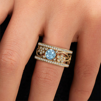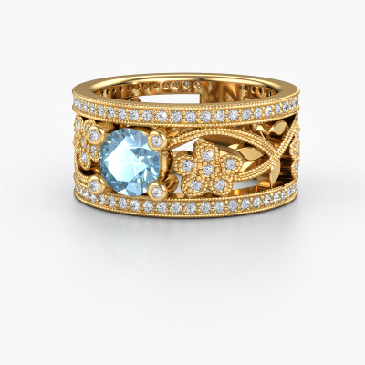 Do you have a vintage fetish? Then this gold Severine ring suits you perfectly. It's a contemporary design, based on vintage designs. A slightly romantic, extraordinary design! Even more when you customize to your liking. This graceful ring is set with exquisite blue lab grown diamonds. As you can see, you can simply choose a gemstone that matches your style. Each gemstone is carefully selected by our merchants whom are spread throughout the world. Nothing but the best gems for our expert goldsmith! After all, it is his crowning glory!Our goldsmiths passionately create your customized ring to your liking with the utmost care. The gold ring, as shown here, can be customized using our online tool. Feel free to ask our jewel designers for assistance if you want changes made which are unavailable in our online tool. We are happy to answer your questions.After receiving your order, our goldsmiths will passionately start the creative process of making your ring in our own studio. Because we don't have a big stockpile, these costs will not be passed on to you. Our pricing is proof of that! We offer top quality jewels at lowest price, guaranteed.To make it easier for you, we offer a 30 day return policy. Check our terms and conditions.