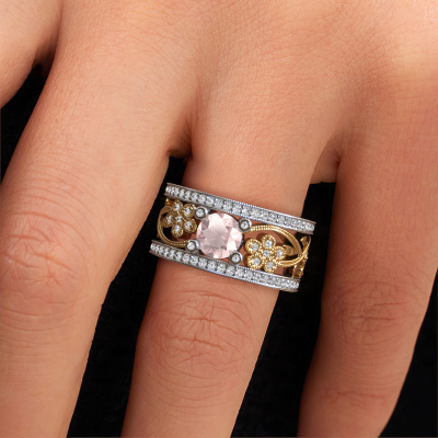 Do you have a vintage fetish? Then this white gold Severine ring suits you perfectly. It's a contemporary design, based on vintage designs. A slightly romantic, extraordinary design! Even more when you customize to your liking. This graceful ring is set with exquisite morganite champagne. As you can see, you can simply choose a gemstone that matches your style. Each gemstone is carefully selected by our merchants whom are spread throughout the world. Nothing but the best gems for our expert goldsmith! After all, it is his crowning glory!Our goldsmiths passionately create your customized ring to your liking with the utmost care. The white gold ring, as shown here, can be customized using our online tool. Feel free to ask our jewel designers for assistance if you want changes made which are unavailable in our online tool. We are happy to answer your questions.After receiving your order, our goldsmiths will passionately start the creative process of making your ring in our own studio. Because we don't have a big stockpile, these costs will not be passed on to you. Our pricing is proof of that! We offer top quality jewels at lowest price, guaranteed.To make it easier for you, we offer a 30 day return policy. Check our terms and conditions.