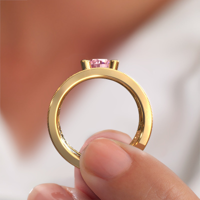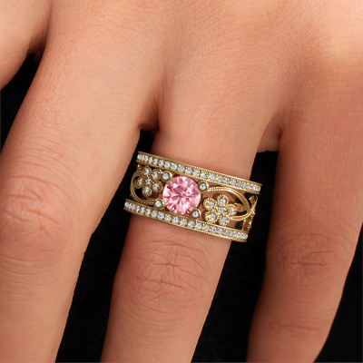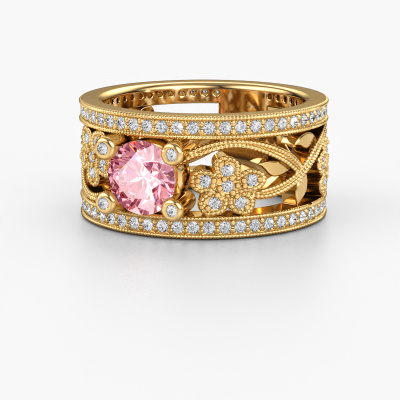 Do you have a vintage fetish? Then this gold Severine ring suits you perfectly. It's a contemporary design, based on vintage designs. A slightly romantic, extraordinary design! Even more when you customize to your liking. This graceful ring is set with exquisite pink lab grown diamonds. As you can see, you can simply choose a gemstone that matches your style. Each gemstone is carefully selected by our merchants whom are spread throughout the world. Nothing but the best gems for our expert goldsmith! After all, it is his crowning glory!Our goldsmiths passionately create your customized ring to your liking with the utmost care. The gold ring, as shown here, can be customized using our online tool. Feel free to ask our jewel designers for assistance if you want changes made which are unavailable in our online tool. We are happy to answer your questions.After receiving your order, our goldsmiths will passionately start the creative process of making your ring in our own studio. Because we don't have a big stockpile, these costs will not be passed on to you. Our pricing is proof of that! We offer top quality jewels at lowest price, guaranteed.To make it easier for you, we offer a 30 day return policy. Check our terms and conditions.