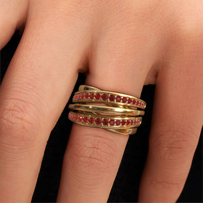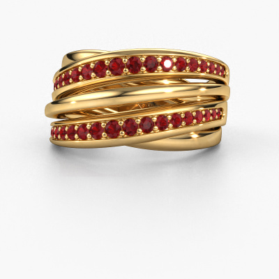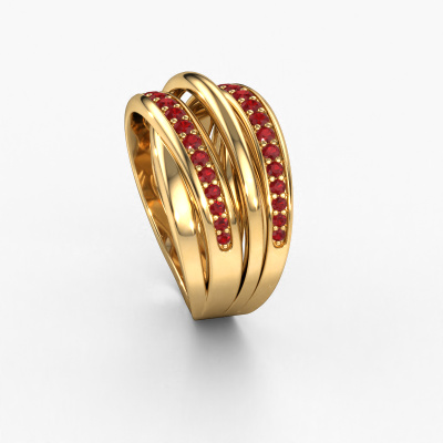 This exclusive gold Marylouise 2 ring is a true work of art! This ring is made of 14 Carat gold and is set with 1.2 mm round ruby. The smallest ornaments are crafted by our goldsmith with a lot of patience and great passion. In order to create this ring with great precision, this craft requires a keen eye and a skillful hand. A challenge which ignites a fire in our expert goldsmiths. The exquisite ruby are set in a way that their unique qualities are strengthened. This gives the ring an even more glamorous appearance. The ring is unique by itself though, because of the natural birthstones we selected especially for this Marylouise 2 ring. And by choosing the precious metal yourself, you create a unique ring. As soon as you finished designing your Marylouise 2 ring with our online tool, our goldsmiths will start their creative process of making your ring. This will be done with passion and care, according ancient crafting. On top of that, our jewels are made of eco-friendly materials. Simply customize online with our online tool, if you want any changes made. If you want specific changes made to your Marylouise 2 ring, that are unavailable in our online tool, please feel free to contact our expert designers.By using our modern techniques, we can design and customize the finest quality jewels with the utmost care for you. Our rings are always priced 30 percent lower than other jewelers. We make rings to order, so we don't have to maintain a large stock. If you have a certain budget, we are more than happy to advice you accordingly.To make it easier for you, we offer a 30 day return policy. Check our terms and conditions.