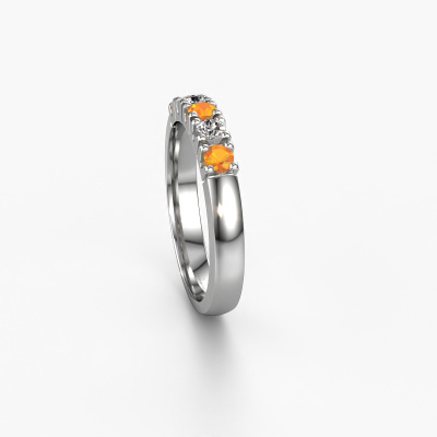 This extraordinary ring is called Rianne 5. This type of ring is known as a memoire ring, because its gemstones are set in a continuous line. This makes it easy to combine with other rings. The band of this platinum ring is set in a combination of citrin and diamond 2.7 mm. You can easily choose the combination you prefer online. As you can see, a single citrin is set in this single alliance platinum ring. The memoire ring represents collaboration. And that is precisely what these gemstones do, collaborate. Together they add a beautiful effect to the band of a classic ring! Such a meaningful ring, wouldn't you agree? All of our hand selected citrin are positioned by hand by our expert goldsmith. It's a precise task, which can only be completed successfully through the combination of pure craftsmanship and usage of the latest techniques which give it an optimal effect. To create a perfect reflection of light, all the gemstones have to be perfectly aligned in the same way. During manufacturing, the expert goldsmith will therefore monitor the reflection of light constantly to check whether the citrin are aligned properly. This requires a skilled hand and a lot of patience but then the end product will be a true piece of art. And that is our mission!By using a combination of the latest modern techniques, combined with ancient crafting, we can make all our rings in our own studio. Each jewel is made to order. This is advantageous because we can offer you a price you won't find anywhere else.