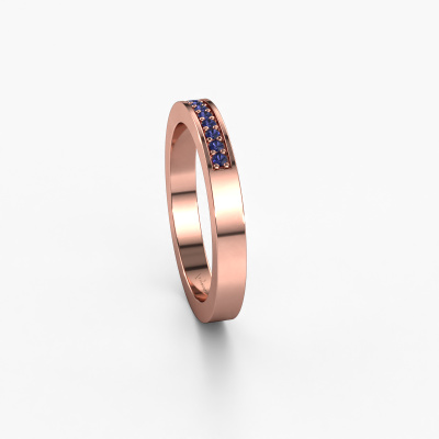This Loes 3 stackable ring in 14 Carat rose gold is set with sapphire. This rose gold stacked Loes 3 ring is the perfect addition to your ring collection! As the name suggests, it is a ring which can be combined on one finger with another ring. It gives you the opportunity to create your own style. A stacked ring usually represents a certain memory of someone special or a memorable moment. It is common to combine a stacked ring, representing an anniversary, with a wedding ring. But this half eternity ring, combined with your other rings, also makes a classy fashion item. The best part of this half eternity stackable ring is that you can customize it to your own liking. Your style, your choice, your stackable ring. On top of that, your modern rose gold stackable ring will be made by hand with eco-friendly materials! Please feel free to easily customize the ring, using our online tool.After receiving your order, our goldsmiths will start the creative process of making your Loes 3 ring. We don't keep stock. This is advantageous because these costs will not be passed on to you. Therefore, we can offer jewelry at exceptionally low prices.To make it easier for you, we offer a 30 day return policy. Check our terms and conditions.