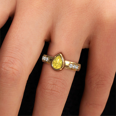 Are you looking for a daring ring with an eye-catching single gemstone? How do you like this Charlotte Pear ring? This gold Charlotte Pear ring is set with a beautiful 8x5 mm pear yellow sapphire. The yellow sapphire is carefully selected by our yellow sapphire suppliers. Subsequently, these gemstones are then set by our goldsmith according to ancient tradition. The ring will then be polished to perfection creating a unique ring with a stunning yellow sapphire. Created especially for you. Customize your own daringCharlotte Pear ring, which will then be created by our goldsmiths with great passion. Do you prefer a different option than is shown here in the gold Charlotte Pear ring? Then our online tools offers various options. Feel free to ask us for help if you are unable to succeed. We are happy to answer your questions!After receiving your order, our goldsmiths will passionately start the creative process of making your ring in our own studio. Because we don't have a big stockpile, these costs will not be passed on to you. Our pricing is proof of that! We offer top quality jewels at lowest price, guaranteed.To make it easier for you, we offer a 30 day return policy. Check our terms and conditions.