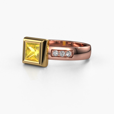 Are you looking for a edgy ring with an eye-catching single gemstone? How do you like this Charlotte Square ring? This rose gold Charlotte Square ring is set with a beautiful 5 mm princess yellow sapphire. The yellow sapphire is carefully selected by our yellow sapphire suppliers. Subsequently, these gemstones are then set by our goldsmith according to ancient tradition. The ring will then be polished to perfection creating a unique ring with a stunning yellow sapphire. Created especially for you. The best part of this edgy ring is that you can customize it to your own liking. Your style, your choice, your ring. On top of that, your modern rose gold ring will be made by hand with eco-friendly materials! Please feel free to easily customize the ring, using our online tool.By using our modern techniques, we can design and customize the finest quality jewels with the utmost care for you. Our rings are always priced 30 percent lower than other jewelers. We make rings to order, so we don't have to maintain a large stock. If you have a certain budget, we are more than happy to advice you accordingly.To make it easier for you, we offer a 30 day return policy. Check our terms and conditions.