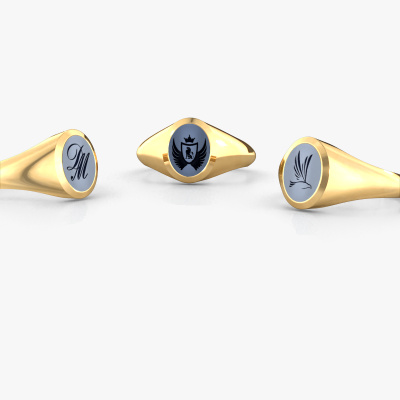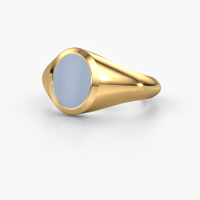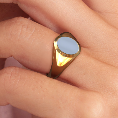 This gold women´s signet ring is a true work of art! This is our beautiful Evon 1 signet ring and it is set with a oval shape light blue sardonyx. In our crafting studio, we use a combination of the latest techniques and ancient traditional craftsmanship, so we are able to create a detailed perfect signet ring. Our expert goldsmiths are fascinated by signet rings. The signet ring can be engraved with initials or a family weapon. Signet rings with family weapons can be handed down from generation to generation and that usually is the case. On top of that, a signet ring is a beautiful, classy piece of jewelry which is trending once more. More than one reason to start or extend the tradition. Please browse our online database for more options on engravings. You can find the departments of our education center at the bottom of this page. Our goldsmiths passionately create your customized signet ring to your liking with the utmost care. The gold signet ring, as shown here, can be customized using our online tool. Feel free to ask our jewel designers for assistance if you want changes made which are unavailable in our online tool. We are happy to answer your questions.After receiving your order, our goldsmiths will passionately start the creative process of making your ring in our own studio. Because we don't have a big stockpile, these costs will not be passed on to you. Our pricing is proof of that! We offer top quality jewels at lowest price, guaranteed.To make it easier for you, we offer a 30 day return policy. Check our terms and conditions.