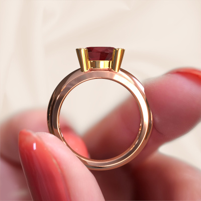 Are you looking for a fashionable ring with an eye-catching single gemstone? How do you like this Tamara OVL ring? This rose gold Tamara OVL ring is set with a beautiful 9x7 mm oval ruby. The ruby is carefully selected by our ruby suppliers. Subsequently, these gemstones are then set by our goldsmith according to ancient tradition. The ring will then be polished to perfection creating a unique ring with a stunning ruby. Created especially for you. A customized modern ring is the perfect gift! New exquisite designs are added daily by our team of passionate goldsmiths. And each design can be customized. Simply customize the precious metals and the color of gemstones which will be used, for example. This makes your design of the modern Tamara OVL ring truly unique!After receiving your order, our goldsmiths will start the creative process of making your Tamara OVL ring. We don't keep stock. This is advantageous because these costs will not be passed on to you. Therefore, we can offer jewelry at exceptionally low prices.To make it easier for you, we offer a 30 day return policy. Check our terms and conditions.