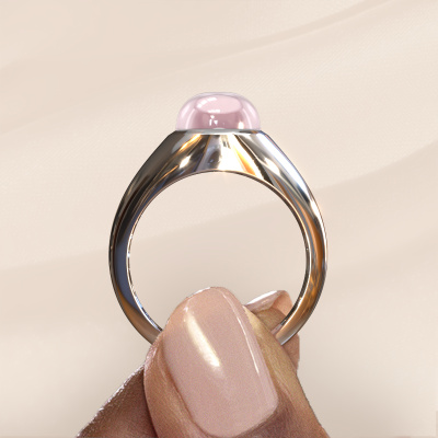 In this photo the white gold Zaza ring is set with a cabochon morganite champagne. Cabochon means a morganite champagne is shaped first, not faceted, into a specific shape, such as a drop, heart or oval cabochon. Subsequently, it is polished until the gemstone has a orb shaped surface. A cabochon gemstone is a stunning, classy eye-catcher that matches perfectly with a contemporary as well as a vintage style. Our expert goldsmiths shape the 1 stone ring to perfection which makes it unique. The cabochon morganite champagne is set so its unique qualities are strengthened. A customized design ring is the perfect gift! New exquisite designs are added daily by our team of passionate goldsmiths. And each design can be customized. Simply customize the precious metals and the color of gemstones which will be used, for example. This makes your design of the design Zaza ring truly unique!After receiving your order, our goldsmiths will start the creative process of making your Zaza ring. We don't keep stock. This is advantageous because these costs will not be passed on to you. Therefore, we can offer jewelry at exceptionally low prices.To make it easier for you, we offer a 30 day return policy. Check our terms and conditions.
