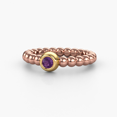 This Dini stackable ring in 14 Carat rose gold is set with amethyst. This rose gold stacked Dini ring is the perfect addition to your ring collection! As the name suggests, it is a ring which can be combined on one finger with another ring. It gives you the opportunity to create your own style. A stacked ring usually represents a certain memory of someone special or a memorable moment. It is common to combine a stacked ring, representing an anniversary, with a wedding ring. But this orbs ring, combined with your other rings, also makes a classy fashion item. The best part of this orbs stackable ring is that you can customize it to your own liking. Your style, your choice, your stackable ring. On top of that, your trendy rose gold stackable ring will be made by hand with eco-friendly materials! Please feel free to easily customize the ring, using our online tool.After receiving your order, our goldsmiths will passionately start the creative process of making your ring in our own studio. Because we don't have a big stockpile, these costs will not be passed on to you. Our pricing is proof of that! We offer top quality jewels at lowest price, guaranteed.To make it easier for you, we offer a 30 day return policy. Check our terms and conditions.