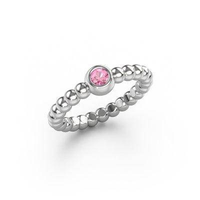 This Dini stackable ring in platinum is set with pink sapphire. This platinum stacked Dini ring is the perfect addition to your ring collection! As the name suggests, it is a ring which can be combined on one finger with another ring. It gives you the opportunity to create your own style. A stacked ring usually represents a certain memory of someone special or a memorable moment. It is common to combine a stacked ring, representing an anniversary, with a wedding ring. But this orbs ring, combined with your other rings, also makes a classy fashion item. The best part of this orbs stackable ring is that you can customize it to your own liking. Your style, your choice, your stackable ring. On top of that, your trendy platinum stackable ring will be made by hand with eco-friendly materials! Please feel free to easily customize the ring, using our online tool.After receiving your order, our goldsmiths will passionately start the creative process of making your ring in our own studio. Because we don't have a big stockpile, these costs will not be passed on to you. Our pricing is proof of that! We offer top quality jewels at lowest price, guaranteed.To make it easier for you, we offer a 30 day return policy. Check our terms and conditions.