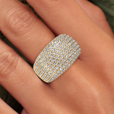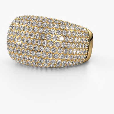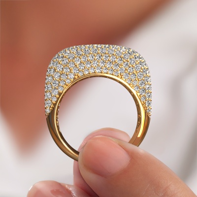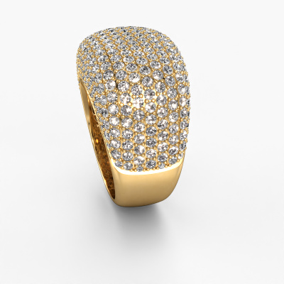 This is a stunning pavé set gold Kira ring. It is set with diamond. A designer ring, fit for classy women. The ring is designed by our own expert goldsmiths. In our artisan studio, we use a combination of the latest techniques and ancient traditional craftsmanship, so we are able to create a perfectly designed ring. Our expert goldsmiths strive for perfection so they won't stop until a perfect ring, a true work of art, is created. A unique ring which matches your own style. A customized exclusive ring is the perfect gift! New exquisite designs are added daily by our team of passionate goldsmiths. And each design can be customized. Simply customize the precious metals and the color of gemstones which will be used, for example. This makes your design of the exclusive kira ring truly unique!By using a combination of the latest modern techniques, combined with ancient crafting, we can make all our rings in our own studio. Each jewel is made to order. This is advantageous because we can offer you a price you won't find anywhere else.To make it easier for you, we offer a 30 day return policy. Check our terms and conditions.