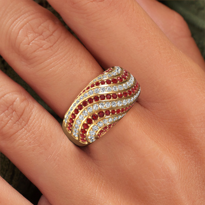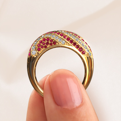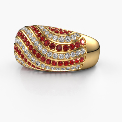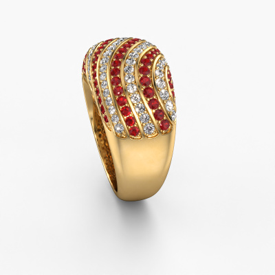 This exclusive gold Sonia ring is a true work of art! This ring is made of 14 Carat gold and is set with 1 mm round ruby. The smallest ornaments are crafted by our goldsmith with a lot of patience and great passion. In order to create this ring with great precision, this craft requires a keen eye and a skillful hand. A challenge which ignites a fire in our expert goldsmiths. The exquisite ruby are set in a way that their unique qualities are strengthened. This gives the ring an even more glamorous appearance. The ring is unique by itself though, because of the natural birthstones we selected especially for this Sonia ring. And by choosing the precious metal yourself, you create a unique ring. A customized luxury ring is the perfect gift! New exquisite designs are added daily by our team of passionate goldsmiths. And each design can be customized. Simply customize the precious metals and the color of gemstones which will be used, for example. This makes your design of the luxury sonia ring truly unique!After receiving your order, our goldsmiths will passionately start the creative process of making your ring in our own studio. Because we don't have a big stockpile, these costs will not be passed on to you. Our pricing is proof of that! We offer top quality jewels at lowest price, guaranteed.To make it easier for you, we offer a 30 day return policy. Check our terms and conditions.