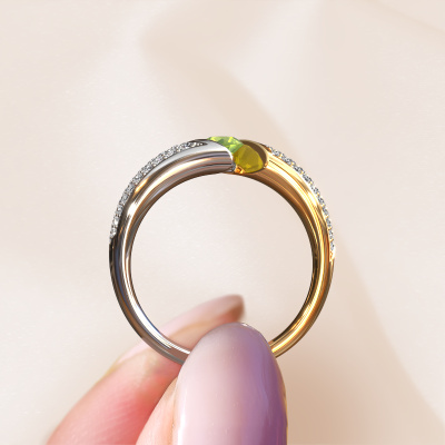 This exclusive white gold Hojalien 3 ring is a true work of art! This ring is made of 14 Carat white gold and is set with 4 mm round peridot. The smallest ornaments are crafted by our goldsmith with a lot of patience and great passion. In order to create this ring with great precision, this craft requires a keen eye and a skillful hand. A challenge which ignites a fire in our expert goldsmiths. The exquisite peridot are set in a way that their unique qualities are strengthened. This gives the ring an even more glamorous appearance. The ring is unique by itself though, because of the natural birthstones we selected especially for this Hojalien 3 ring. And by choosing the precious metal yourself, you create a unique ring. The best part of this pavé set ring is that you can customize it to your own liking. Your style, your choice, your ring. On top of that, your exclusive white gold ring will be made by hand with eco-friendly materials! Please feel free to easily customize the ring, using our online tool.By using a combination of the latest modern techniques, combined with ancient crafting, we can make all our rings in our own studio. Each jewel is made to order. This is advantageous because we can offer you a price you won't find anywhere else.To make it easier for you, we offer a 30 day return policy. Check our terms and conditions.