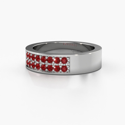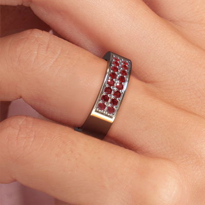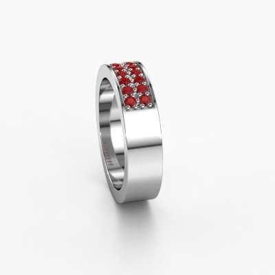 This ring called Catharina 5 is made of 14 Carat white gold and is set with ruby. Are you in the market for a unique white gold stackable ring with a modern twist? Then this ring might suit you. Simply customize to your or her liking. It suits the contemporary modern woman. This pavé set stackable ring is set with beautiful ruby. This has been carefully selected. Because your stackable ring must be adorned with nothing but the most stunning gemstone. Our expert goldsmith will create your ring in our own studio, where the ruby will be set with great care. The ring will then be polished to perfection to create a stunning ring. After receiving your order, our goldsmiths will passionately start the creative process of making your ring in our own studio. Because we don't have a big stockpile, these costs will not be passed on to you. Our pricing is proof of that! We offer top quality jewels at lowest price, guaranteed.New jewelry designs are added to our online collection daily. Our team of passionate designers strive to create extraordinary and diverse designs. Have you seen a ring you like? Please feel free to contact us. Based on a good price/ quality ratio, we will make you an offer you can't refuse!To make it easier for you, we offer a 30 day return policy. Check our terms and conditions.