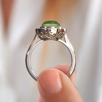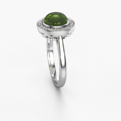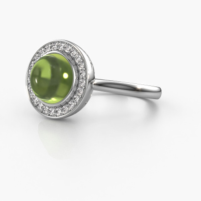 Are you looking for a royal ring with an eye-catching single gemstone? How do you like this Alisa ring? This platinum Alisa ring is set with a beautiful 8 mm round cabochon peridot. The peridot is carefully selected by our peridot suppliers. Subsequently, these birthstones are then set by our goldsmith according to ancient tradition. The ring will then be polished to perfection creating a unique ring with a stunning peridot. Created especially for you. A customized fantasy ring is the perfect gift! New exquisite designs are added daily by our team of passionate goldsmiths. And each design can be customized. Simply customize the precious metals and the color of gemstones which will be used, for example. This makes your design of the fantasy Alisa ring truly unique!Are you on a budget? Please feel free to contact us, so we can go discuss your options. We offer our rings at guaranteed best price, because we make them to order. You won't find such a price anywhere else!To make it easier for you, we offer a 30 day return policy. Check our terms and conditions.