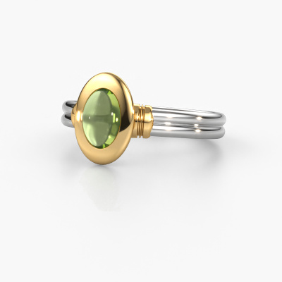 In this photo the white gold Brittni ring is set with a cabochon peridot. Cabochon means a peridot is shaped first, not faceted, into a specific shape, such as a drop, heart or oval cabochon. Subsequently, it is polished until the gemstone has a orb shaped surface. A cabochon gemstone is a stunning, classy eye-catcher that matches perfectly with a contemporary as well as a vintage style. Our expert goldsmiths shape the tasteful ring to perfection which makes it unique. The cabochon peridot is set so its unique qualities are strengthened. Our goldsmiths passionately create your customized ring to your liking with the utmost care. The white gold ring, as shown here, can be customized using our online tool. Feel free to ask our jewel designers for assistance if you want changes made which are unavailable in our online tool. We are happy to answer your questions.Because we design and deliver our own rings, we can offer you a ring at a price you won't find anywhere else. A ring is made to order, which helps prevent excess supplies, so we can make you a great price offer. We understand it feels risky, buying your ring online, but we will gladly assist in the designing process, taking your budget into consideration.To make it easier for you, we offer a 30 day return policy. Check our terms and conditions.