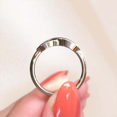 What a infinity ring indeed! This ring is called Infinity 1. A classy infinity ring, that suits the contemporary, fashionable woman. This ring is proof of our new method of crafting. We came up with a process in our own studio in which the old as well as new ways of crafting are unified in perfect harmony. We make a detailed 3D design of the intended ring. Then our expert goldsmith crafts your ring into perfection. A unique ring, styled to your liking. A customized trendy ring is the perfect gift! New exquisite designs are added daily by our team of passionate goldsmiths. And each design can be customized. Simply customize the precious metals and the color of gemstones which will be used, for example. This makes your design of the trendy Infinity 1 ring truly unique!Because we design and deliver our own rings, we can offer you a ring at a price you won't find anywhere else. A ring is made to order, which helps prevent excess supplies, so we can make you a great price offer. We understand it feels risky, buying your ring online, but we will gladly assist in the designing process, taking your budget into consideration.To make it easier for you, we offer a 30 day return policy. Check our terms and conditions.