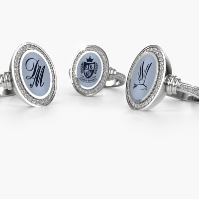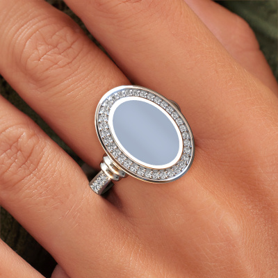 This platinum women´s signet ring is a true work of art! This is our special Cristina signet ring and it is set with a oval shape light blue sardonyx. In our crafting studio, we use a combination of the latest techniques and ancient traditional craftsmanship, so we are able to create a detailed perfect signet ring. Our expert goldsmiths are fascinated by signet rings. The signet ring can be engraved with initials or a family weapon. Signet rings with family weapons can be handed down from generation to generation and that usually is the case. On top of that, a signet ring is a beautiful, classy piece of jewelry which is trending once more. More than one reason to start or extend the tradition. Please browse our online database for more options on engravings. You can find the departments of our education center at the bottom of this page. As soon as you finished designing your Cristina signet ring with our online tool, our goldsmiths will start their creative process of making your ring. This will be done with passion and care, according ancient crafting. On top of that, our jewels are made of eco-friendly materials. Simply customize online with our online tool, if you want any changes made. If you want specific changes made to your Cristina signet ring, that are unavailable in our online tool, please feel free to contact our expert designers.After receiving your order, our goldsmiths will passionately start the creative process of making your ring in our own studio. Because we don't have a big stockpile, these costs will not be passed on to you. Our pricing is proof of that! We offer top quality jewels at lowest price, guaranteed.To make it easier for you, we offer a 30 day return policy. Check our terms and conditions.