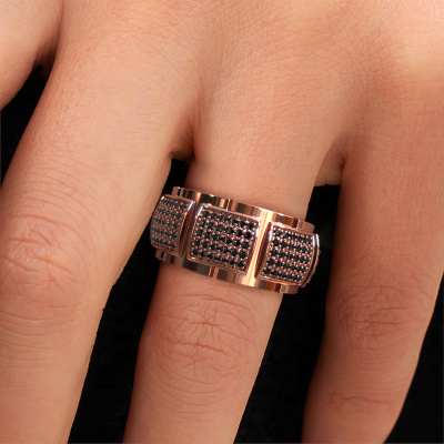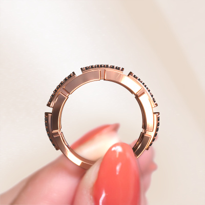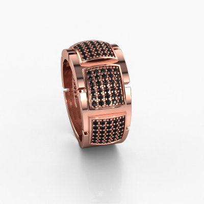 This exclusive rose gold Laura ring is a true work of art! This ring is made of 14 Carat rose gold and is set with 0.90 crt round black diamond. The smallest ornaments are crafted by our goldsmith with a lot of patience and great passion. In order to create this ring with great precision, this craft requires a keen eye and a skillful hand. A challenge which ignites a fire in our expert goldsmiths. The exquisite black diamonds are set in a way that their unique qualities are strengthened. This gives the ring an even more glamorous appearance. The ring is unique by itself though, because of the natural birthstones we selected especially for this Laura ring. And by choosing the precious metal yourself, you create a unique ring. The best part of this pavé set ring is that you can customize it to your own liking. Your style, your choice, your ring. On top of that, your exclusive rose gold ring will be made by hand with eco-friendly materials! Please feel free to easily customize the ring, using our online tool.By using our modern techniques, we can design and customize the finest quality jewels with the utmost care for you. Our rings are always priced 30 percent lower than other jewelers. We make rings to order, so we don't have to maintain a large stock. If you have a certain budget, we are more than happy to advice you accordingly.To make it easier for you, we offer a 30 day return policy. Check our terms and conditions.