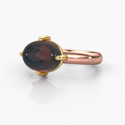 In this photo the rose gold Melodee ring is set with a cabochon smokey quartz. Cabochon means a smokey quartz is shaped first, not faceted, into a specific shape, such as a drop, heart or oval cabochon. Subsequently, it is polished until the gemstone has a orb shaped surface. A cabochon gemstone is a stunning, classy eye-catcher that matches perfectly with a contemporary as well as a vintage style. Our expert goldsmiths shape the charming ring to perfection which makes it unique. The cabochon smokey quartz is set so its unique qualities are strengthened. Our goldsmiths passionately create your customized ring to your liking with the utmost care. The rose gold ring, as shown here, can be customized using our online tool. Feel free to ask our jewel designers for assistance if you want changes made which are unavailable in our online tool. We are happy to answer your questions.After receiving your order, our goldsmiths will passionately start the creative process of making your ring in our own studio. Because we don't have a big stockpile, these costs will not be passed on to you. Our pricing is proof of that! We offer top quality jewels at lowest price, guaranteed.To make it easier for you, we offer a 30 day return policy. Check our terms and conditions.