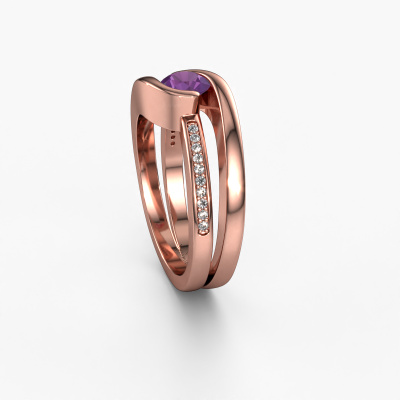 How would you describe your own style? Are you looking for something uniquely different? This graceful rose gold Xenia 2 ring is astonishing! Simply customize to your or her own liking. This ring is set with amethyst. These amethysten have been carefully selected because your ring must be adorned with nothing but the most beautiful gemstone. Wouldn't you agree? Our expert goldsmith will create your ring in our own crafting studios, where the amethyst will be set with care. The ring will then be polished to perfection to give it that extra sparkle. It's a perfect ring for a woman of excellent taste!How do you like this fantasy rose gold ring? Simply customize this Xenia 2 ring, using our online tool. Subsequently, your personal graceful Xenia 2 ring will be made by hand by our goldsmiths. Precious metals and gemstones can be customized to your liking. Do you have specific preferences which are unavailable in our online tool? Please feel free to contact us. We will customize your personal fantasy ring to your liking.Are you on a budget? Please feel free to contact us, so we can go discuss your options. We offer our rings at guaranteed best price, because we make them to order. You won't find such a price anywhere else!To make it easier for you, we offer a 30 day return policy. Check our terms and conditions.