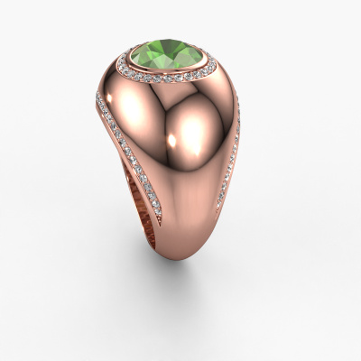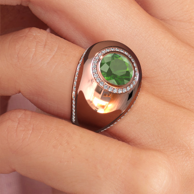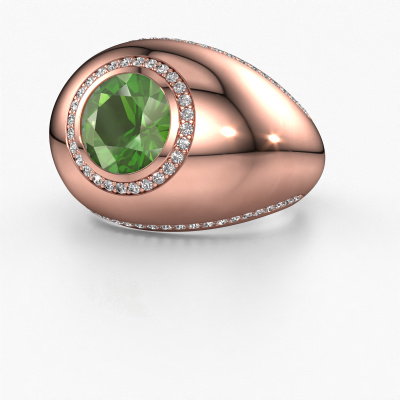 This is a stunning birthstones rose gold Roxann ring. It is set with tourmaline green. A designer ring, fit for classy women. The ring is designed by our own expert goldsmiths. In our artisan studio, we use a combination of the latest techniques and