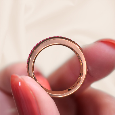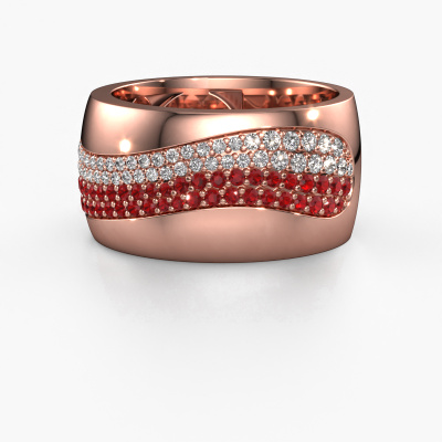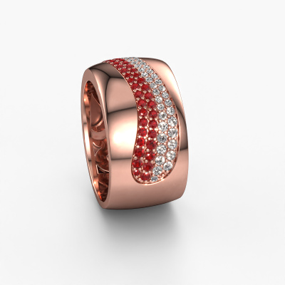 This ring is called Ria. It is made of 14 Carat rose gold and is set with 1 mm ruby. Are you looking for a unique rose gold ring with a modern appearance? Then this is the ring for you. Simply customize to your or her liking. Perfect for a modern, contemporary woman! This wide ring is adorned with stunning ruby. It was carefully selected because your ring must be adorned with nothing but the most beautiful gemstones. Our expert goldsmith will create your ring in our own studio, where the ruby will be set with great care. The ring will then be polished to perfection to create a beautiful ring. Are you on a budget? Please feel free to contact us, so we can go discuss your options. We offer our rings at guaranteed best price, because we make them to order. You won't find such a price anywhere else!