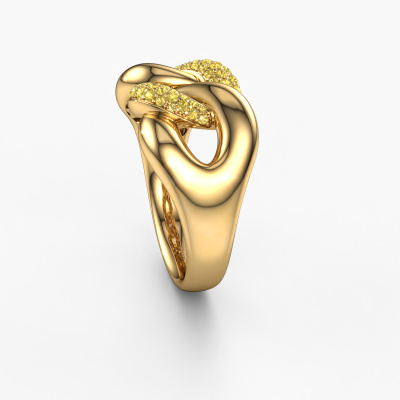 How would you describe your own style? Are you looking for something uniquely different? This royal gold Kylie 2 11mm ring is astonishing! Simply customize to your or her own liking. This ring is set with yellow sapphire. These yellow sapphire have been carefully selected because your ring must be adorned with nothing but the most beautiful gemstone. Wouldn't you agree? Our expert goldsmith will create your ring in our own crafting studios, where the yellow sapphire will be set with care. The ring will then be polished to perfection to give it that extra sparkle. It's a perfect ring for a woman of excellent taste!As soon as you finished designing your Kylie 2 11mm ring with our online tool, our goldsmiths will start their creative process of making your ring. This will be done with passion and care, according ancient crafting. On top of that, our jewels are made of eco-friendly materials. Simply customize online with our online tool, if you want any changes made. If you want specific changes made to your Kylie 2 11mm ring, that are unavailable in our online tool, please feel free to contact our expert designers.By using our modern techniques, we can design and customize the finest quality jewels with the utmost care for you. Our rings are always priced 30 percent lower than other jewelers. We make rings to order, so we don't have to maintain a large stock. If you have a certain budget, we are more than happy to advice you accordingly.To make it easier for you, we offer a 30 day return policy. Check our terms and conditions.