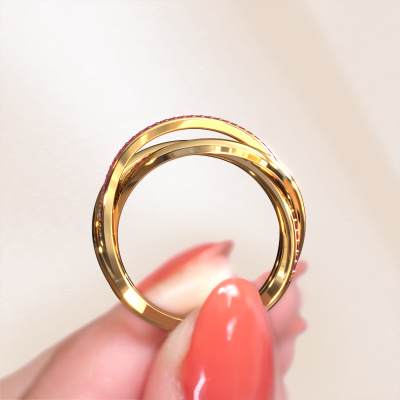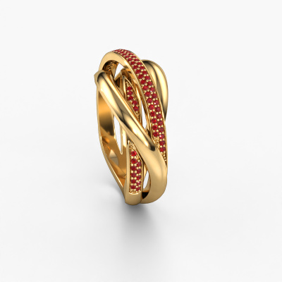 Because of its detailed finish, this wide ring with ruby has a stylish appearance. A wide ring that fits the contemporary woman like a glove. This gold ring, our Candice, is a true eye-catcher indeed! As soon as we know what you desire, we will create your ring in our own crafting studio. We work according an innovative process. We use a combination of the latest techniques and ancient traditional craftsmanship, so we are able to create a perfectly designed ring. Our expert goldsmiths strive for perfection so they won't stop until a perfect ring, a true work of art, is created especially for you!As soon as you finished designing your Candice ring with our online tool, our goldsmiths will start their creative process of making your ring. This will be done with passion and care, according ancient crafting. On top of that, our jewels are made of eco-friendly materials. Simply customize online with our online tool, if you want any changes made. If you want specific changes made to your Candice ring, that are unavailable in our online tool, please feel free to contact our expert designers.After receiving your order, our goldsmiths will passionately start the creative process of making your ring in our own studio. Because we don't have a big stockpile, these costs will not be passed on to you. Our pricing is proof of that! We offer top quality jewels at lowest price, guaranteed.To make it easier for you, we offer a 30 day return policy. Check our terms and conditions.