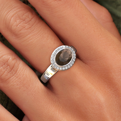 Are you looking for a birthstones ring with an eye-catching single gemstone? How do you like this Salena ring? This white gold Salena ring is set with a beautiful 8x6 mm oval smokey quartz. The smokey quartz is carefully selected by our smokey quartz suppliers. Subsequently, these birthstones are then set by our goldsmith according to ancient tradition. The ring will then be polished to perfection creating a unique ring with a stunning smokey quartz. Created especially for you. The best part of this birthstones ring is that you can customize it to your own liking. Your style, your choice, your ring. On top of that, your design white gold ring will be made by hand with eco-friendly materials! Please feel free to easily customize the ring, using our online tool.By using a combination of the latest modern techniques, combined with ancient crafting, we can make all our rings in our own studio. Each jewel is made to order. This is advantageous because we can offer you a price you won't find anywhere else.To make it easier for you, we offer a 30 day return policy. Check our terms and conditions.