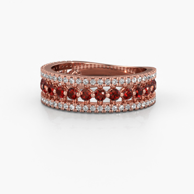 This exclusive rose gold Elizbeth 1 ring is a true work of art! This ring is made of 14 Carat rose gold and is set with 2 mm round garnet. The smallest ornaments are crafted by our goldsmith with a lot of patience and great passion. In order to create this ring with great precision, this craft requires a keen eye and a skillful hand. A challenge which ignites a fire in our expert goldsmiths. The exquisite garnet are set in a way that their unique qualities are strengthened. This gives the ring an even more glamorous appearance. The ring is unique by itself though, because of the natural birthstones we selected especially for this Elizbeth 1 ring. And by choosing the precious metal yourself, you create a unique ring. The best part of this sparkling ring is that you can customize it to your own liking. Your style, your choice, your ring. On top of that, your vintage rose gold ring will be made by hand with eco-friendly materials! Please feel free to easily customize the ring, using our online tool.By using a combination of the latest modern techniques, combined with ancient crafting, we can make all our rings in our own studio. Each jewel is made to order. This is advantageous because we can offer you a price you won't find anywhere else.To make it easier for you, we offer a 30 day return policy. Check our terms and conditions.