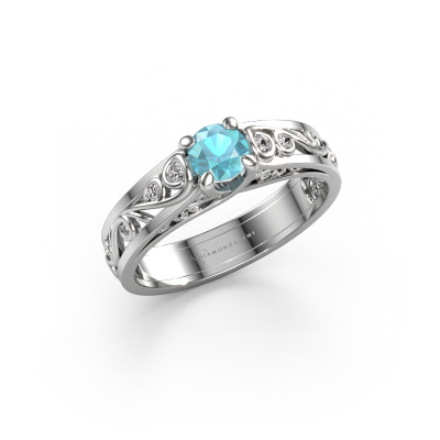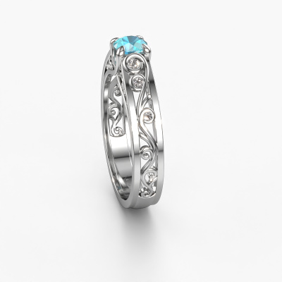 Do you have a vintage fetish? Then this white gold Quinty ring suits you perfectly. It's a contemporary design, based on vintage designs. A slightly romantic, extraordinary design! Even more when you customize to your liking. This special ring is set with exquisite blue topaz. As you can see, you can simply choose a gemstone that matches your style. Each gemstone is carefully selected by our merchants whom are spread throughout the world. Nothing but the best gems for our expert goldsmith! After all, it is his crowning glory!The special Quinty ring, as shown here, can be customized to your liking. Our online tool offers many different options but please feel free to contact us if you want changes made to your Quinty ring, which are unavailable in our online tool.By using a combination of the latest modern techniques, combined with ancient crafting, we can make all our rings in our own studio. Each jewel is made to order. This is advantageous because we can offer you a price you won't find anywhere else.To make it easier for you, we offer a 30 day return policy. Check our terms and conditions.