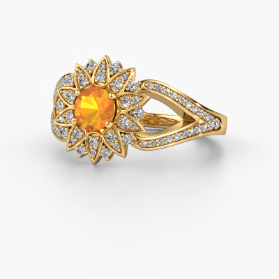 How would you describe your own style? Are you looking for something uniquely different? This special gold Chasidy 2 ring is astonishing! Simply customize to your or her own liking. This ring is set with citrin. These citrin have been carefully selected because your ring must be adorned with nothing but the most beautiful gemstone. Wouldn't you agree? Our expert goldsmith will create your ring in our own crafting studios, where the citrin will be set with care. The ring will then be polished to perfection to give it that extra sparkle. It's a perfect ring for a woman of excellent taste!The best part of this special ring is that you can customize it to your own liking. Your style, your choice, your ring. On top of that, your traditional gold ring will be made by hand with eco-friendly materials! Please feel free to easily customize the ring, using our online tool.By using a combination of the latest modern techniques, combined with ancient crafting, we can make all our rings in our own studio. Each jewel is made to order. This is advantageous because we can offer you a price you won't find anywhere else.To make it easier for you, we offer a 30 day return policy. Check our terms and conditions.
