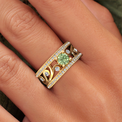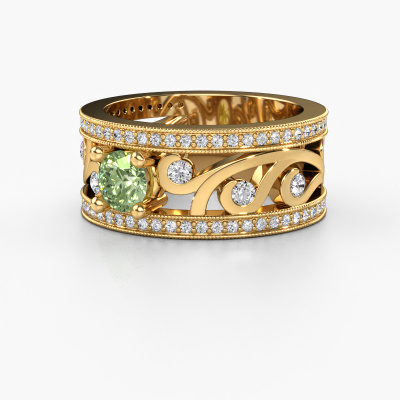 Do you have a vintage fetish? Then this gold Sanne ring suits you perfectly. It's a contemporary design, based on vintage designs. A slightly romantic, extraordinary design! Even more when you customize to your liking. This special ring is set with exquisite green lab grown diamondd. As you can see, you can simply choose a gemstone that matches your style. Each gemstone is carefully selected by our merchants whom are spread throughout the world. Nothing but the best gems for our expert goldsmith! After all, it is his crowning glory!Customize your own specialSanne ring, which will then be created by our goldsmiths with great passion. Do you prefer a different option than is shown here in the gold Sanne ring? Then our online tools offers various options. Feel free to ask us for help if you are unable to succeed. We are happy to answer your questions!After receiving your order, our goldsmiths will start the creative process of making your Sanne ring. We don't keep stock. This is advantageous because these costs will not be passed on to you. Therefore, we can offer jewelry at exceptionally low prices.To make it easier for you, we offer a 30 day return policy. Check our terms and conditions.