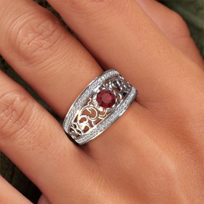 Do you have a vintage fetish? Then this platinum Marilee ring suits you perfectly. It's a contemporary design, based on vintage designs. A slightly romantic, extraordinary design! Even more when you customize to your liking. This special ring is set with exquisite ruby. As you can see, you can simply choose a gemstone that matches your style. Each gemstone is carefully selected by our merchants whom are spread throughout the world. Nothing but the best gems for our expert goldsmith! After all, it is his crowning glory!A customized vintage ring is the perfect gift! New exquisite designs are added daily by our team of passionate goldsmiths. And each design can be customized. Simply customize the precious metals and the color of gemstones which will be used, for example. This makes your design of the vintage Marilee ring truly unique!After receiving your order, our goldsmiths will passionately start the creative process of making your ring in our own studio. Because we don't have a big stockpile, these costs will not be passed on to you. Our pricing is proof of that! We offer top quality jewels at lowest price, guaranteed.To make it easier for you, we offer a 30 day return policy. Check our terms and conditions.