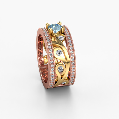 Do you have a vintage fetish? Then this rose gold Sanne ring suits you perfectly. It's a contemporary design, based on vintage designs. A slightly romantic, extraordinary design! Even more when you customize to your liking. This special ring is set with exquisite blue lab grown diamonds. As you can see, you can simply choose a gemstone that matches your style. Each gemstone is carefully selected by our merchants whom are spread throughout the world. Nothing but the best gems for our expert goldsmith! After all, it is his crowning glory!Customize your own specialSanne ring, which will then be created by our goldsmiths with great passion. Do you prefer a different option than is shown here in the rose gold Sanne ring? Then our online tools offers various options. Feel free to ask us for help if you are unable to succeed. We are happy to answer your questions!After receiving your order, our goldsmiths will start the creative process of making your Sanne ring. We don't keep stock. This is advantageous because these costs will not be passed on to you. Therefore, we can offer jewelry at exceptionally low prices.To make it easier for you, we offer a 30 day return policy. Check our terms and conditions.