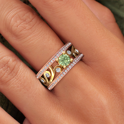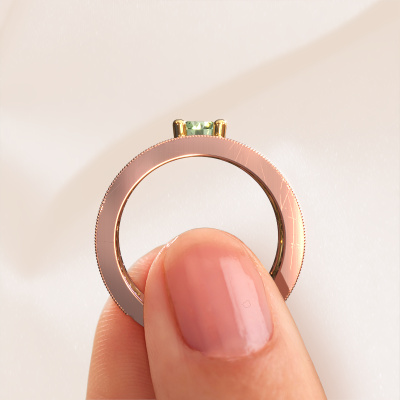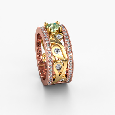 Do you have a vintage fetish? Then this rose gold Sanne ring suits you perfectly. It's a contemporary design, based on vintage designs. A slightly romantic, extraordinary design! Even more when you customize to your liking. This special ring is set with exquisite green lab grown diamondd. As you can see, you can simply choose a gemstone that matches your style. Each gemstone is carefully selected by our merchants whom are spread throughout the world. Nothing but the best gems for our expert goldsmith! After all, it is his crowning glory!Customize your own specialSanne ring, which will then be created by our goldsmiths with great passion. Do you prefer a different option than is shown here in the rose gold Sanne ring? Then our online tools offers various options. Feel free to ask us for help if you are unable to succeed. We are happy to answer your questions!After receiving your order, our goldsmiths will start the creative process of making your Sanne ring. We don't keep stock. This is advantageous because these costs will not be passed on to you. Therefore, we can offer jewelry at exceptionally low prices.To make it easier for you, we offer a 30 day return policy. Check our terms and conditions.