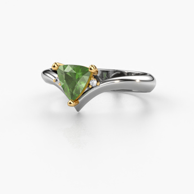 This ring called Arlette is made of 14 Carat white gold and is set with tourmaline green. Are you in the market for a unique white gold ring with a modern twist? Then this ring might suit you. Simply customize to your or her liking. It suits the contemporary modern woman. This special ring is set with beautiful tourmaline green. This has been carefully selected. Because your ring must be adorned with nothing but the most stunning gemstone. Our expert goldsmith will create your ring in our own studio, where the tourmaline green will be set with great care. The ring will then be polished to perfection to create a stunning ring. After receiving your order, our goldsmiths will passionately start the creative process of making your ring in our own studio. Because we don't have a big stockpile, these costs will not be passed on to you. Our pricing is proof of that! We offer top quality jewels at lowest price, guaranteed.New jewelry designs are added to our online collection daily. Our team of passionate designers strive to create extraordinary and diverse designs. Have you seen a ring you like? Please feel free to contact us. Based on a good price/ quality ratio, we will make you an offer you can't refuse!To make it easier for you, we offer a 30 day return policy. Check our terms and conditions.