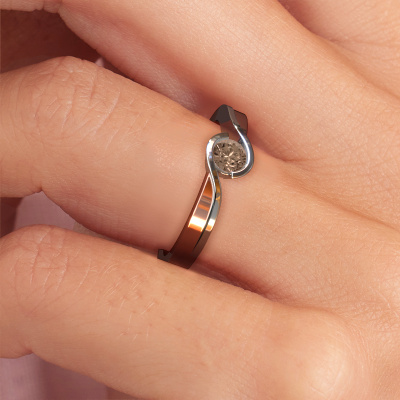 This ring called Lola is made of 14 Carat rose gold and is set with brown diamond. Are you in the market for a unique rose gold ring with a modern twist? Then this ring might suit you. Simply customize to your or her liking. It suits the contemporary modern woman. This stylish ring is set with beautiful brown diamond. This has been carefully selected. Because your ring must be adorned with nothing but the most stunning gemstone. Our expert goldsmith will create your ring in our own studio, where the brown diamond will be set with great care. The ring will then be polished to perfection to create a stunning ring. Because we design and deliver our own rings, we can offer you a ring at a price you won't find anywhere else. A ring is made to order, which helps prevent excess supplies, so we can make you a great price offer. We understand it feels risky, buying your ring online, but we will gladly assist in the designing process, taking your budget into consideration.Our team of talented, passionate designers add new ring designs to our online collection daily. Our objective in doing so, is to be able to offer you a wide variety of jewels. Please feel free to request a quote if you have specific wishes for your ring. We guarantee to make you an offer you can't refuse.To make it easier for you, we offer a 30 day return policy. Check our terms and conditions.