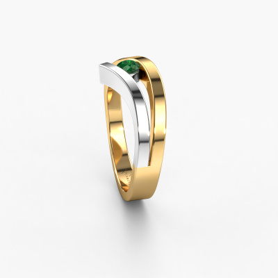 This ring called Evalyn 1 is made of 14 Carat gold and is set with emerald. Are you in the market for a unique gold ring with a modern twist? Then this ring might suit you. Simply customize to your or her liking. It suits the contemporary modern woman. This stylish ring is set with beautiful emerald. This has been carefully selected. Because your ring must be adorned with nothing but the most stunning gemstone. Our expert goldsmith will create your ring in our own studio, where the emerald will be set with great care. The ring will then be polished to perfection to create a stunning ring. By using a combination of the latest modern techniques, combined with ancient crafting, we can make all our rings in our own studio. Each jewel is made to order. This is advantageous because we can offer you a price you won't find anywhere else.New jewelry designs are added to our online collection daily. Our team of passionate designers strive to create extraordinary and diverse designs. Have you seen a ring you like? Please feel free to contact us. Based on a good price/ quality ratio, we will make you an offer you can't refuse!To make it easier for you, we offer a 30 day return policy. Check our terms and conditions.