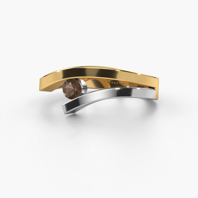 This ring called Evalyn 1 is made of 14 Carat gold and is set with smokey quartz. Are you in the market for a unique gold ring with a modern twist? Then this ring might suit you. Simply customize to your or her liking. It suits the contemporary modern woman. This stylish ring is set with beautiful smokey quartz. This has been carefully selected. Because your ring must be adorned with nothing but the most stunning gemstone. Our expert goldsmith will create your ring in our own studio, where the smokey quartz will be set with great care. The ring will then be polished to perfection to create a stunning ring. By using a combination of the latest modern techniques, combined with ancient crafting, we can make all our rings in our own studio. Each jewel is made to order. This is advantageous because we can offer you a price you won't find anywhere else.New jewelry designs are added to our online collection daily. Our team of passionate designers strive to create extraordinary and diverse designs. Have you seen a ring you like? Please feel free to contact us. Based on a good price/ quality ratio, we will make you an offer you can't refuse!To make it easier for you, we offer a 30 day return policy. Check our terms and conditions.