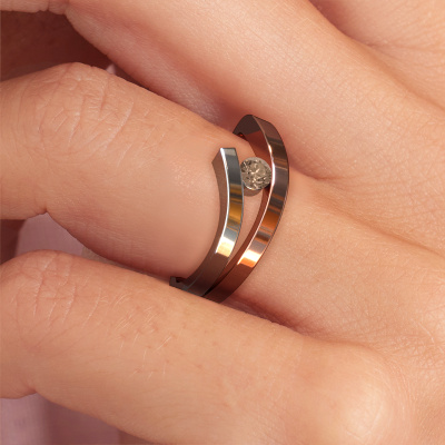 This ring called Evalyn 1 is made of 14 Carat rose gold and is set with brown diamond. Are you in the market for a unique rose gold ring with a modern twist? Then this ring might suit you. Simply customize to your or her liking. It suits the contemporary modern woman. This stylish ring is set with beautiful brown diamond. This has been carefully selected. Because your ring must be adorned with nothing but the most stunning gemstone. Our expert goldsmith will create your ring in our own studio, where the brown diamond will be set with great care. The ring will then be polished to perfection to create a stunning ring. By using a combination of the latest modern techniques, combined with ancient crafting, we can make all our rings in our own studio. Each jewel is made to order. This is advantageous because we can offer you a price you won't find anywhere else.New jewelry designs are added to our online collection daily. Our team of passionate designers strive to create extraordinary and diverse designs. Have you seen a ring you like? Please feel free to contact us. Based on a good price/ quality ratio, we will make you an offer you can't refuse!To make it easier for you, we offer a 30 day return policy. Check our terms and conditions.