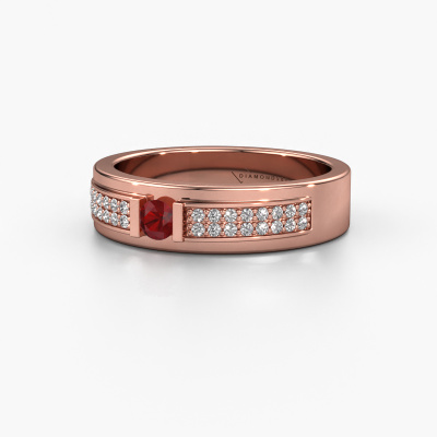 This ring called Mable is made of 14 Carat rose gold and is set with ruby. Are you in the market for a unique rose gold ring with a modern twist? Then this ring might suit you. Simply customize to your or her liking. It suits the contemporary modern woman. This stylish ring is set with beautiful ruby. This has been carefully selected. Because your ring must be adorned with nothing but the most stunning gemstone. Our expert goldsmith will create your ring in our own studio, where the ruby will be set with great care. The ring will then be polished to perfection to create a stunning ring. After receiving your order, our goldsmiths will passionately start the creative process of making your ring in our own studio. Because we don't have a big stockpile, these costs will not be passed on to you. Our pricing is proof of that! We offer top quality jewels at lowest price, guaranteed.New jewelry designs are added to our online collection daily. Our team of passionate designers strive to create extraordinary and diverse designs. Have you seen a ring you like? Please feel free to contact us. Based on a good price/ quality ratio, we will make you an offer you can't refuse!To make it easier for you, we offer a 30 day return policy. Check our terms and conditions.