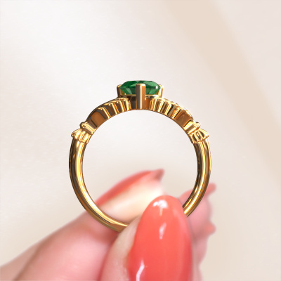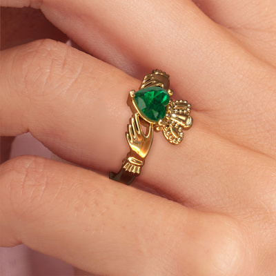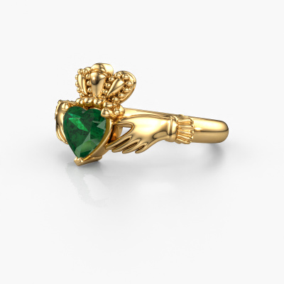 This Irish Claddagh ring is a sign of love set with a heart emerald. It is a remarkable, symbolic ring in which a crowned heart, held by two hands, is shown. The heart of a Claddagh ring is a symbol of love, the hands represent friendship and the crown, loyalty. A beautiful piece of jewelry to either give or receive! This symbolic 14 Carat gold Claddagh 2 ring is made by hand in our own studio by our expert goldsmiths. The symbolic Claddagh 2 ring, as shown here, can be customized to your liking. Our online tool offers many different options but please feel free to contact us if you want changes made to your Claddagh 2 ring, which are unavailable in our online tool.After receiving your order, our goldsmiths will start the creative process of making your Claddagh 2 ring. We don't keep stock. This is advantageous because these costs will not be passed on to you. Therefore, we can offer jewelry at exceptionally low prices.To make it easier for you, we offer a 30 day return policy. Check our terms and conditions.