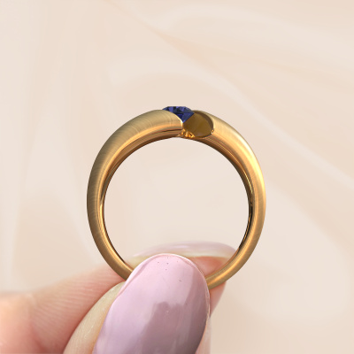 This ring called Hojalien 1 is made of 14 Carat gold and is set with sapphire. Are you in the market for a unique gold ring with a modern twist? Then this ring might suit you. Simply customize to your or her liking. It suits the contemporary modern woman. This tasteful ring is set with beautiful sapphire. This has been carefully selected. Because your ring must be adorned with nothing but the most stunning gemstone. Our expert goldsmith will create your ring in our own studio, where the sapphire will be set with great care. The ring will then be polished to perfection to create a stunning ring. By using our modern techniques, we can design and customize the finest quality jewels with the utmost care for you. Our rings are always priced 30 percent lower than other jewelers. We make rings to order, so we don't have to maintain a large stock. If you have a certain budget, we are more than happy to advice you accordingly.