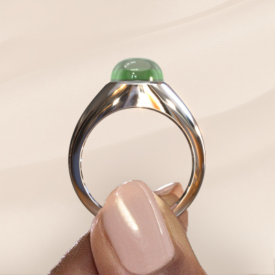 In this photo the platinum Zaza ring is set with a cabochon tourmaline green. Cabochon means a tourmaline green is shaped first, not faceted, into a specific shape, such as a drop, heart or oval cabochon. Subsequently, it is polished until the gemstone has a orb shaped surface. A cabochon gemstone is a stunning, classy eye-catcher that matches perfectly with a contemporary as well as a vintage style. Our expert goldsmiths shape the 1 stone ring to perfection which makes it unique. The cabochon tourmaline green is set so its unique qualities are strengthened. A customized design ring is the perfect gift! New exquisite designs are added daily by our team of passionate goldsmiths. And each design can be customized. Simply customize the precious metals and the color of gemstones which will be used, for example. This makes your design of the design Zaza ring truly unique!After receiving your order, our goldsmiths will start the creative process of making your Zaza ring. We don't keep stock. This is advantageous because these costs will not be passed on to you. Therefore, we can offer jewelry at exceptionally low prices.To make it easier for you, we offer a 30 day return policy. Check our terms and conditions.