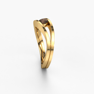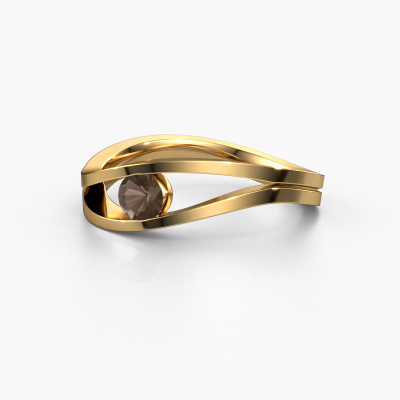 This ring called Sigrid 1 is made of 14 Carat gold and is set with smokey quartz. Are you in the market for a unique gold ring with a modern twist? Then this ring might suit you. Simply customize to your or her liking. It suits the contemporary modern woman. This twist ring is set with beautiful smokey quartz. This has been carefully selected. Because your ring must be adorned with nothing but the most stunning gemstone. Our expert goldsmith will create your ring in our own studio, where the smokey quartz will be set with great care. The ring will then be polished to perfection to create a stunning ring. By using our modern techniques, we can design and customize the finest quality jewels with the utmost care for you. Our rings are always priced 30 percent lower than other jewelers. We make rings to order, so we don't have to maintain a large stock. If you have a certain budget, we are more than happy to advice you accordingly.Our team of talented, passionate designers add new ring designs to our online collection daily. Our objective in doing so, is to be able to offer you a wide variety of jewels. Please feel free to request a quote if you have specific wishes for your ring. We guarantee to make you an offer you can't refuse.To make it easier for you, we offer a 30 day return policy. Check our terms and conditions.