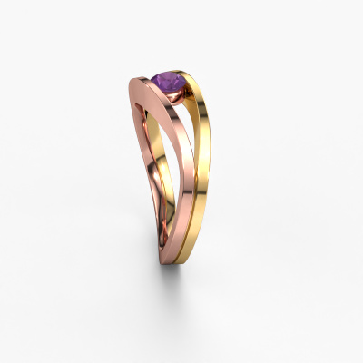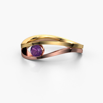 This ring called Sigrid 1 is made of 14 Carat rose gold and is set with amethyst. Are you in the market for a unique rose gold ring with a modern twist? Then this ring might suit you. Simply customize to your or her liking. It suits the contemporary modern woman. This twist ring is set with beautiful amethyst. This has been carefully selected. Because your ring must be adorned with nothing but the most stunning gemstone. Our expert goldsmith will create your ring in our own studio, where the amethyst will be set with great care. The ring will then be polished to perfection to create a stunning ring. By using our modern techniques, we can design and customize the finest quality jewels with the utmost care for you. Our rings are always priced 30 percent lower than other jewelers. We make rings to order, so we don't have to maintain a large stock. If you have a certain budget, we are more than happy to advice you accordingly.Our team of talented, passionate designers add new ring designs to our online collection daily. Our objective in doing so, is to be able to offer you a wide variety of jewels. Please feel free to request a quote if you have specific wishes for your ring. We guarantee to make you an offer you can't refuse.To make it easier for you, we offer a 30 day return policy. Check our terms and conditions.